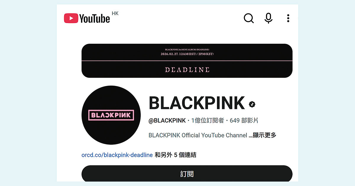 今日信報 – 財經新聞 – BLACKPINK官方YouTube訂戶破億 藝人創舉 – 凌通 – 中環解密