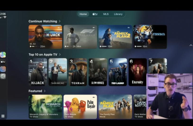 此外,程式碼亦出現多段有關Apple TV的代碼,包括專為車載系統重新設計的Apple TV介面、首次使用教學提示,以及明確安全警告「只有在車輛停泊時才能播放影片」。開發者Thomas Dye利用Xcode的CarPlay模擬器,成功展示流暢的全螢幕播放體驗,用家可瀏覽Apple TV+的劇集與電影、切換播放裝置(手機與車機之間),甚至在 iPhone動態島看到即時控制按鈕,畫面佈局與現有Apple TV App極為相似,但按鈕與文字均放大,更適合車內觸控操作。