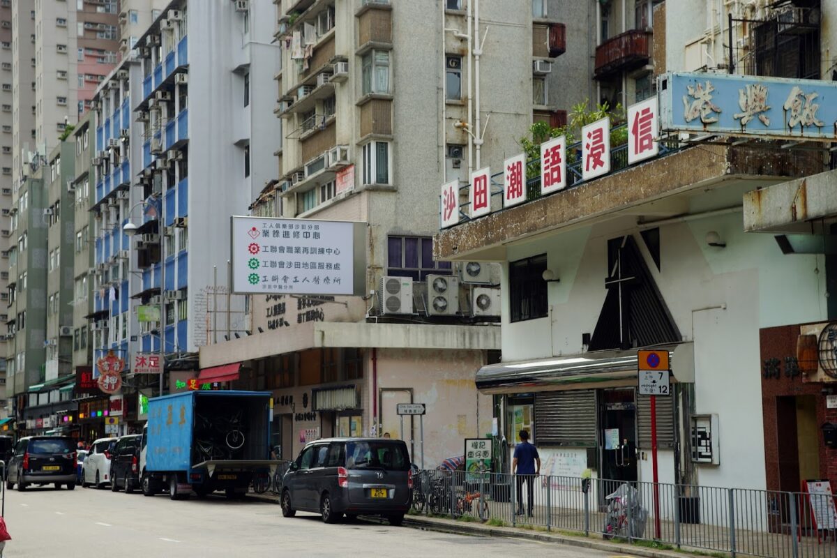 Outside MTR Tai Wai Station.